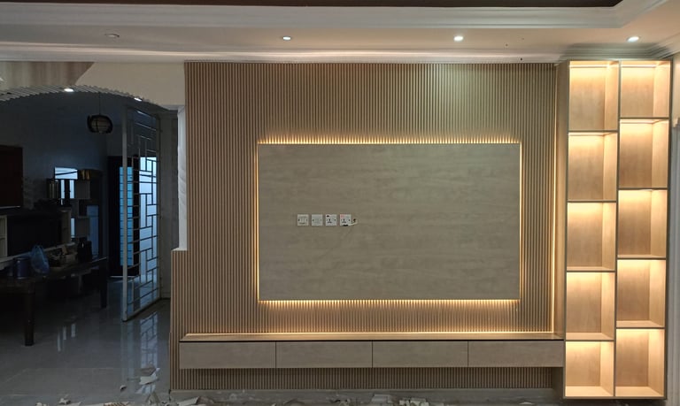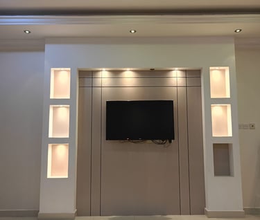 تشهد ديكورات الشاشات في أبها تطوراً كبيراً، خاصة في المنازل الحديثة التي تعتمد على الطابع العصري والبسيط. نقدم تصاميم مودرن تناسب جميع أحجام الشاشات وتتناغم مع باقي عناصر الديكور مثل الإنارة الجانبية، الرفوف الطائرة، وخزائن التخزين السفلية. كما نستخدم خامات مثل الخشب الصناعي، الفوم، وبديل الرخام لتوفير لمسة فاخرة وسهولة في التنظيف. تصاميمنا تناسب غرف المعيشة والصالات وتمنح الجدار مظهراً فخماً ومنظماً.
