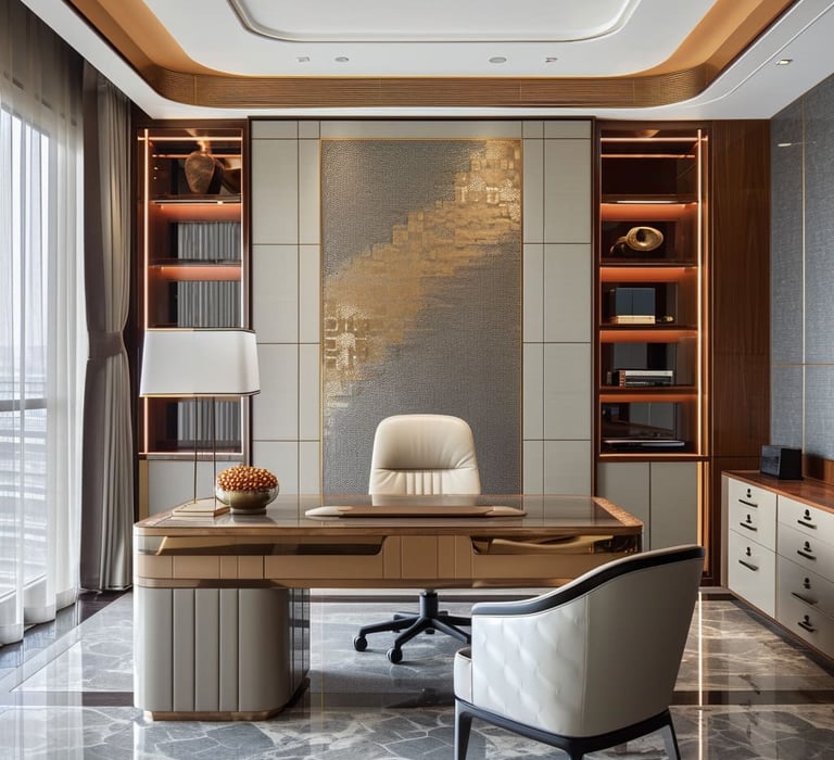 إذا كنت تبحث عن تصميم مكتب احترافي في عسير يعكس هوية نشاطك ويوفر بيئة عمل مريحة وعصرية، فأنت في المكان المناسب. نحن نقدم خدمات تنفيذ ديكورات المكاتب في أبها، خميس مشيط، وكافة أنحاء منطقة عسير بأعلى معايير الجودة والاحتراف. سواء كنت بحاجة لتجديد مكتب قائم أو تصميم مكتب جديد من الصفر، نهتم بكل التفاصيل من اختيار الألوان، توزيع الإضاءة، وتنسيق الأثاث لضمان تحقيق أقصى درجات الراحة والإنتاجية. نضمن لك مكتباً يجمع بين الجمال والعملية ويترك انطباعاً مميزاً لدى عملائك وزوّارك. تواصل معنا الآن 0504423497