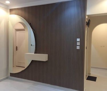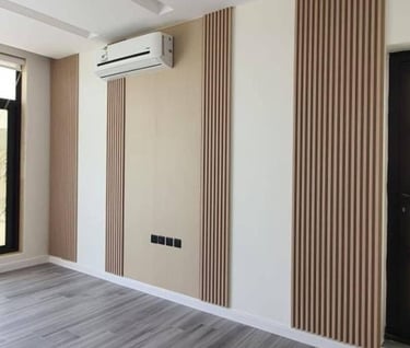 من أكثر استخدامات بديل الخشب شيوعًا في أبها هو تركيبه على الجدران والأسقف لإضفاء طابع خشبي دافئ. يتميز بسهولة التنظيف وطول العمر الافتراضي، مما يجعله مثاليًا للمجالس، وغرف المعيشة، والمداخل وغيرها.